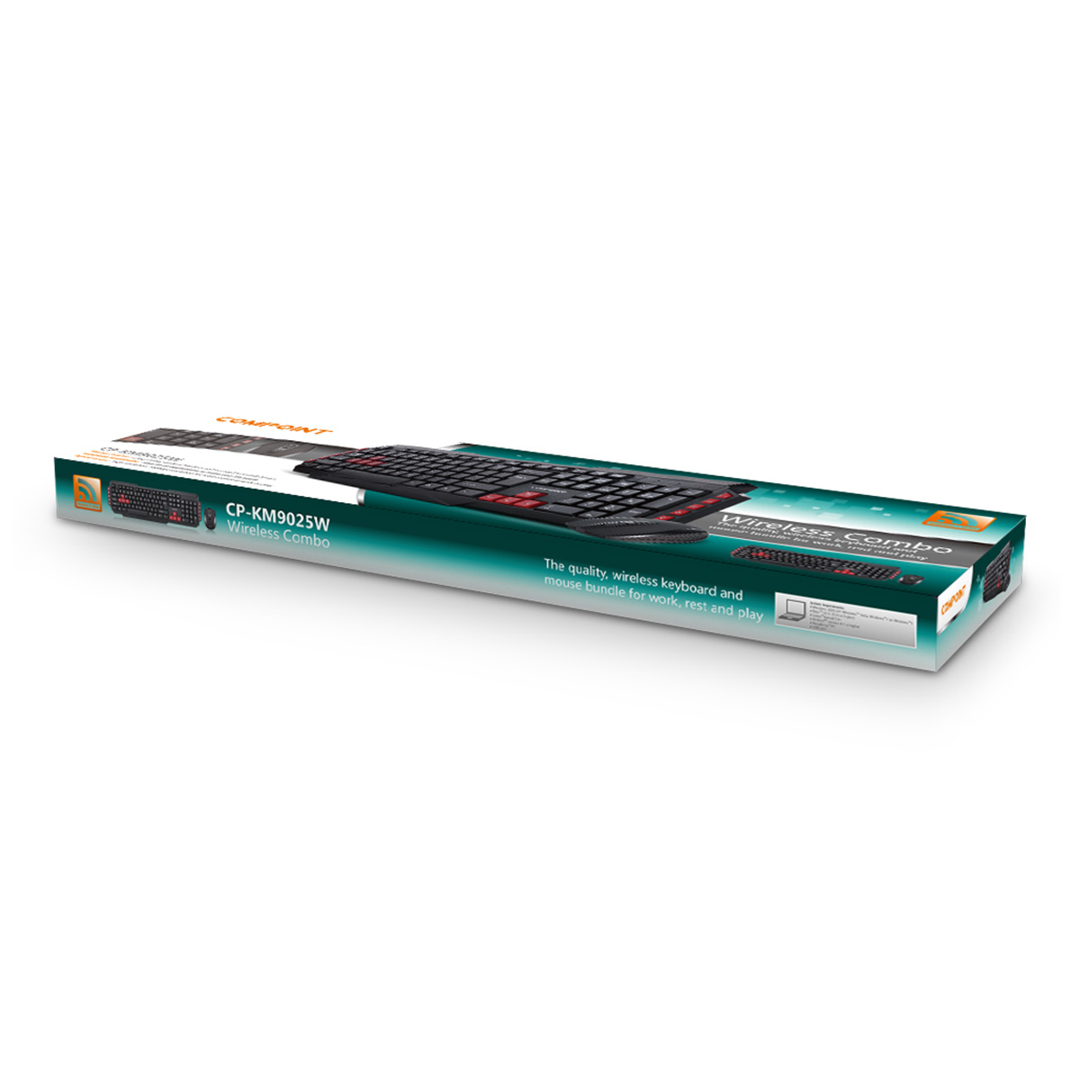 The exciting Compoint CP-KM9025W is a cost-effective but feature-rich Wireless Keyboard, bundled with a totally driverless 2.4Ghz nano adapter than can be used instantly, on almost all popular computer platforms, even at boot up. Featuring on-board multimedia control together with colour-coded keys for the most popular gaming and leisure applications. The mouse works on almost any surface and has accurate optical tracking up to 1600DPI. Ideal for Windows(™), Mac(™) and project computers such as Raspberry(™) together with Linux(™) is a stylish, comfortable form factor.