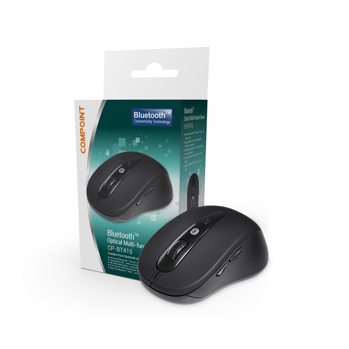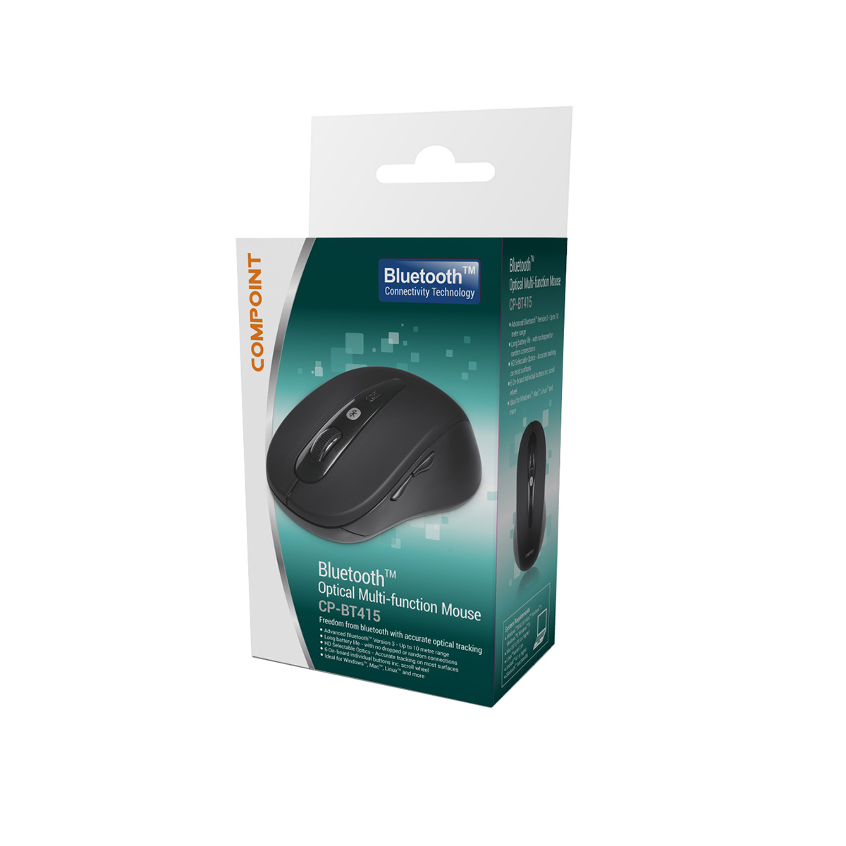 he new CP-BT415 is a new generation, Bluetooth(tm) enabled wireless mouse using the new low-power, Bluetooth(tm) version 3.0 chipset which warrants both low power usage together with a more robust, low latency wire-free connection up to around 10 metres. Ideal for Bluetooth(tm) enabled Windows(tm), Apple(tm), Linux(tm) and other compatible computers, no drivers are needed - just pair the device and your ready to go. Accurate, optical tracking is of course standard with a selectable resolution of up to 1600DPI, ideal for general gaming as well as business and educational applications. 6 on-board individual buttons and scroll-wheel are featured so that you have full control of your applications at all times.