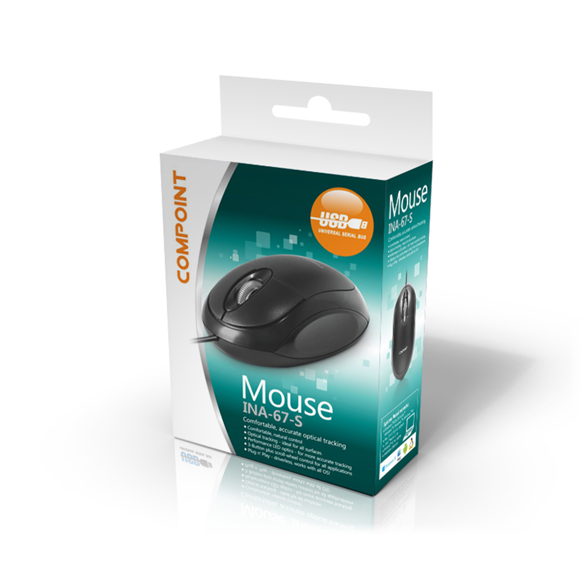 The new CP-INA-67-S from Compint is a new, low cost 1000 dpi LED optical tracking mouse offering enhanced and super-smooth tracking on almost any surface. Around 20% better resolution than our existing INA-67 but still retaining the comfortable 3/4 size form factor and of course 3-button design complete with central scroll wheel. Ideal for general computer usage, but also ideal for business, education and mobile users, the CP-INA-67-S is ideal for all platforms, Windows8(tm), Mac OS X(tm) and the new breed of Android(tm) smartphones and tablet computers which feature a USB port, or, with the inclusion of a USB OTG (on-thego) adapter which fits into any microUSB port.